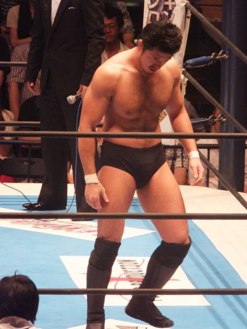 内藤って体があまり大きくないんやから、例えばヒザを抱えて のたうち回ったり、場外にエスケープしたり、