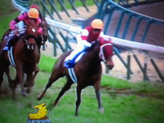 道中は馬込みに包まれ、直線に入っても前がパッカーン!とは開いてくれなくて、ムーアが已む無く強引に外に持ち出してからは難なく突き抜けたという…