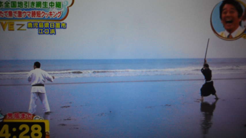 坂上さんからの無茶ぶりがきっかけではじまった、前記の剣術vs大山空手の異種格闘技戦!しかも舞台は海岸!