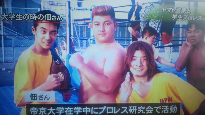 佃さんの紹介パートの中で、帝京大学の学生プロレスで邪&外のオマージュレスラーだった当時の秘蔵写真が複数映されていたのは、