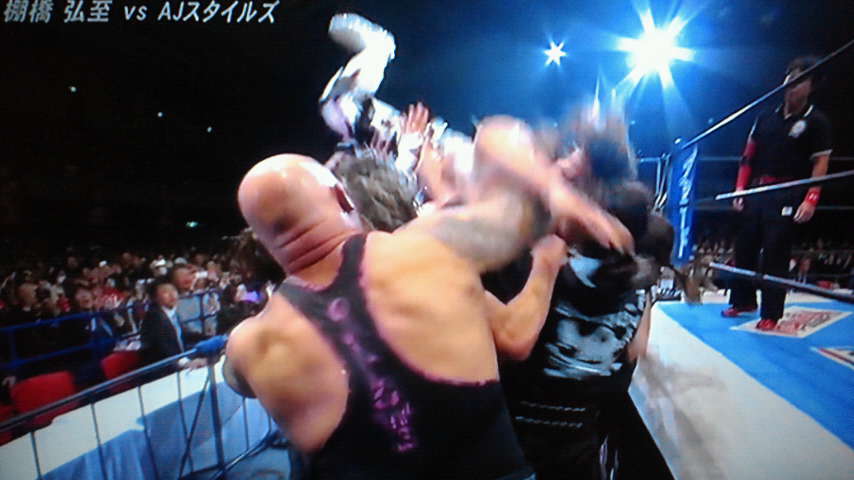 あんな沢山の人数が密集してAJを取り囲んでたら、棚橋の頭と誰かの頭も直撃しますって。