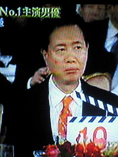 ちなみに、下の写真は最優秀主演男優賞を受賞した渡辺謙さんの涙混じりのスピーチの途中、話の流れで名前が出た瞬間にカメラで抜かれたら、飯を食ってた角川春樹氏。