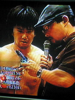 大日本の道場から始まり、フィラデルフィアやプエルトリコやメキシコを経由して、干支が一回りした頃にミノルがデビューした後楽園に辿り着くという、あたかも桂小金治が進行役を買って出そうないぐらいに、凄く味わい深いシーンの筈なんですけど…感慨も緊張感も感じさせない、見事なまでのTAJIRIワールドでしたね。素晴らしかった(笑)