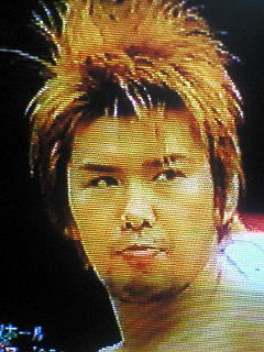 ミノルのハードコアのムーヴや『サヨナラ!』には付き合わず、パンタロンの帯をほどいて、グリーンミストを吹いて、頭を蹴っ飛ばしてフォール勝ち、と。
